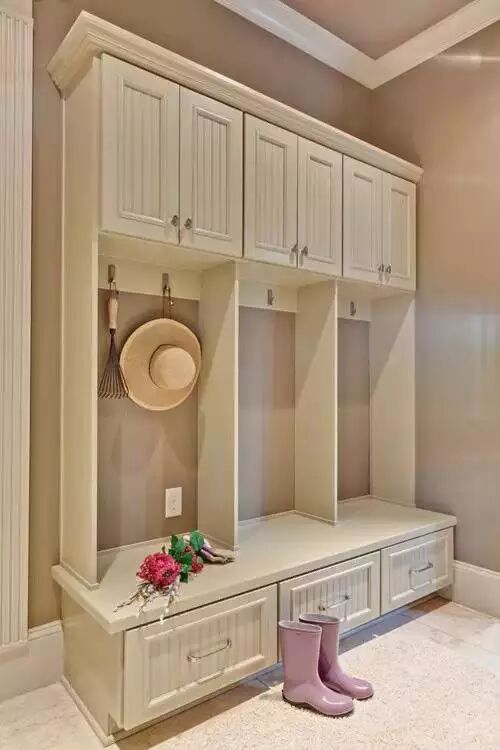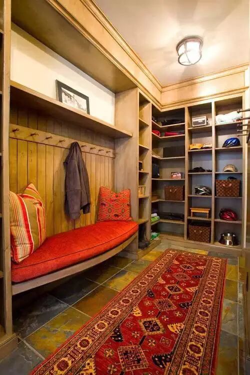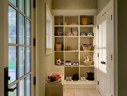 这组储物格是直接把步入式衣帽间中的储物家具拿来用的,以大小不同的格子为主,也是一种很实用的选择。