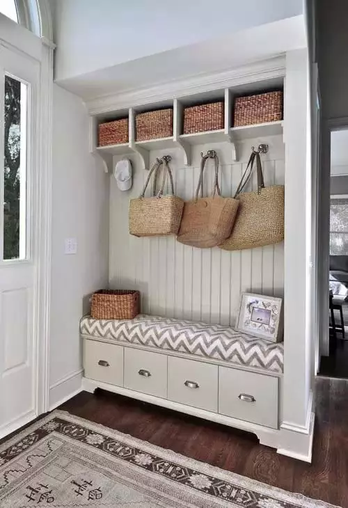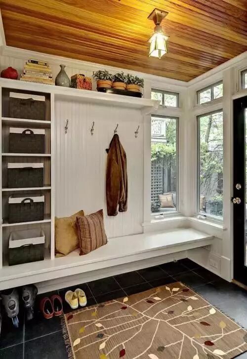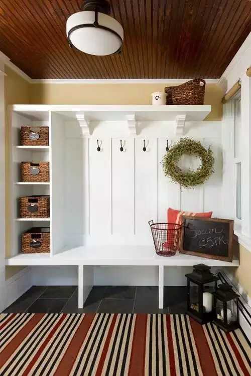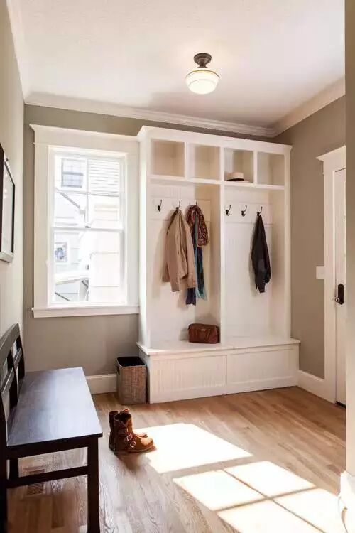 「关于玄关,小伙伴们是否觉得这是一个可装可不装的地方呢?其实玄关对于小户型来说,大有用处,它不仅是入门的最佳景观,还是出门前的仪表整理处,也还是一个小型衣帽间!有了如此多功能的玄关,再也不用担心卧室的衣柜不够用了!」