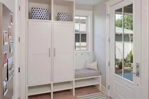 如果担心开敞式的衣架会堆积灰尘,选择这种高低搭配的储物柜也不错,但是切记高柜不要太多,否则会使整体空间看起来很憋屈。
